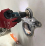 4️⃣ تخريم البلاطة بالمقاس المناسب.